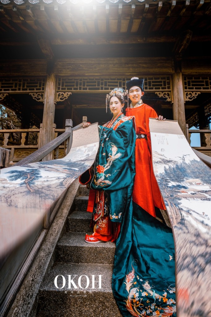 傳統漢服婚禮其實也是種傳統藝術的結合,更是傳遞著對文化的自信與特色。 藉由文化的傳承,把台灣在地文化特色融入在漢婚服婚紗照中,讓人大開眼界成為焦點,漢服婚禮顧問OKOH在跟準新人接洽漢服婚禮諮詢時,不管是漢服婚禮包套和拍攝的中國風景點挑選,都可以見到準新人的一些想法跟巧思,結合了專業漢服婚禮顧問團隊OKOH後總能從婚禮紀錄之中式婚紗照中看到最美好的文化成果呢!